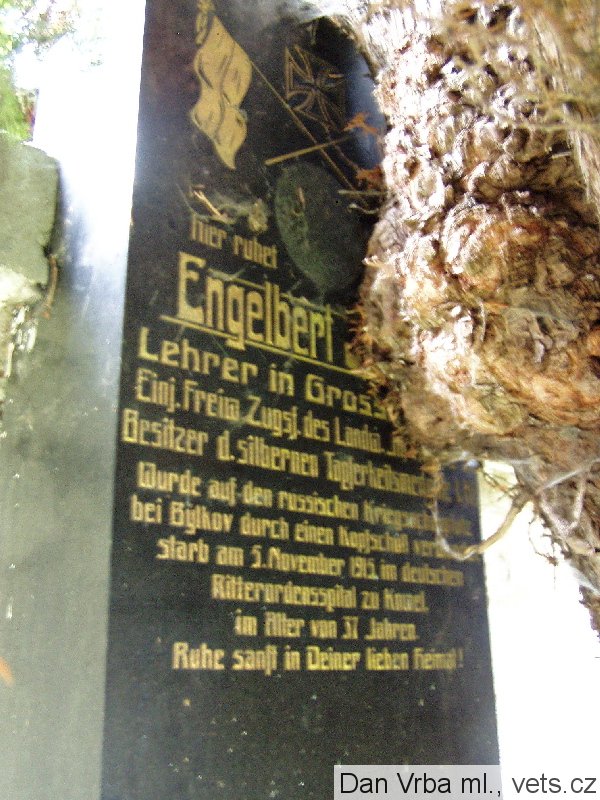 Bittner Josef: *21.6.1877 Ober Politz, okr. Böhmisch Leipa (Horní Police, okr. Česká Lípa). Ženatý, rolník. IR. Nr. 94, hodnost neuvedena. +29.10.1917 ZivilSpit. Adelsberg, okr. Krain (dnes Postojna, Slovinsko), apendix. Tamtéž pohřben. Později exhumován, převezen a zde 27.3.1918 pohřben. Nelokalizováno, zrušeno.
