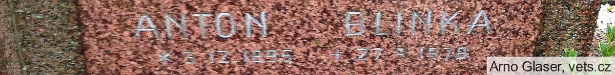 Blinka Anton: *5.12.1895 (dle matriky) Hovězí, č. p. 66, okr. Valašské Meziříčí (dnes okr. Vsetín). Otec: Julius Tomáš Blinka, matka: Kateřina, roz. Machalová. Inft., IR. Nr. 3, 7. Komp. Záznam o zranění v r. 1915.