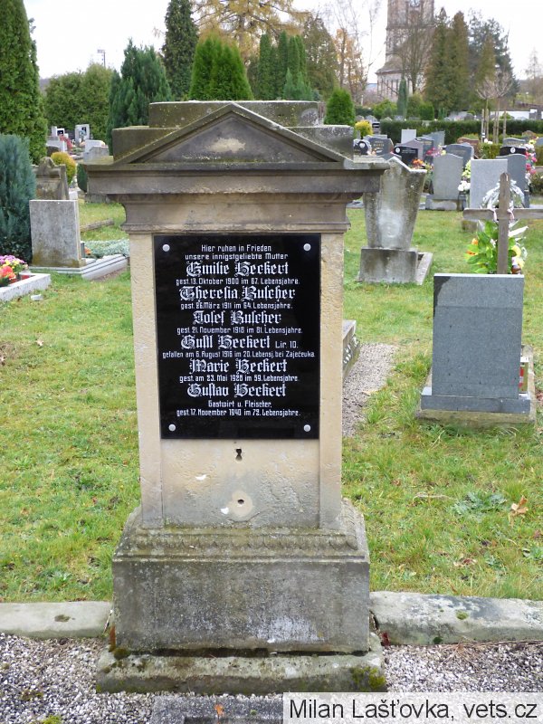 Teubner Rudolf Josef: *12.4.1903 Weipert, č. p. 472, okr. Pressnitz (Vejprty, tehdy okr. Přísečnice, dnes Chomutov), do rodiny mimoňského řezníka Josefa Teubnera a Emmy, roz. Bartl. Ženatý (24.8.1925) s Elsou Marií Antonií, roz. Prade. Bydlištěm Niemes, Adolf Hitler Strasse 124/III (Mimoň, Mírová). Lesní zaměstnanec. Gefreiter, beweglichen Kraftfahrzeug Intandtsetzungs Komp. 200. +29.5.1942 ReLa II N.S.V. Heim Strullendorf, Bamberg, Oberfranke, Německo, Addisonova choroba. Převezen a zde pohřben. Nezjištěno v které z obou částí hřbitova.