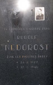 Pilotní žák Rudolf Nedorost zahynul 17.10.1946 při letecké nehodě u Hrdibořic, okr. Prostějov.