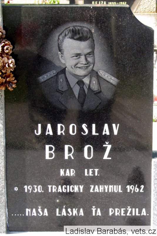 Pilot kpt. Jaroslav Brož a technik Vojtech Šebian zahynuli 26.2.1962 při letecké nehodě u Trenčína na Slovensku.