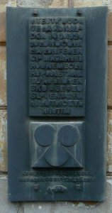 Pamätnú tabuľu vyvoril sochár Ondrej Lipták.
