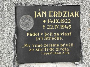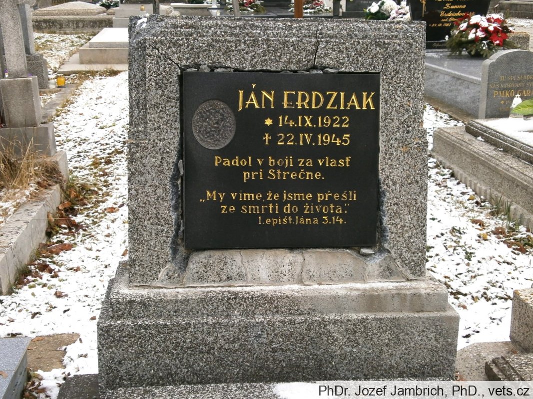 Umístění: Štrba, Dr. Markušovského, obecný cintorín, sektor E vpravo od vchodu oproti domu smútku, hrob č. 281, pri stredovom chodníkuJÁN ERDZIAK