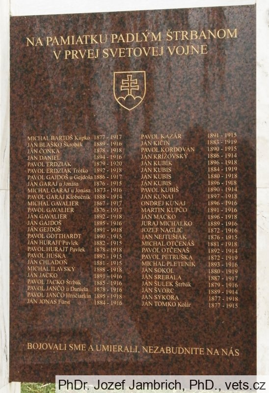 (zdroj: Maniak Marcel a kol.: Štrba 4, Obyvatelia Štrby vo svetových vojnách, 2020)