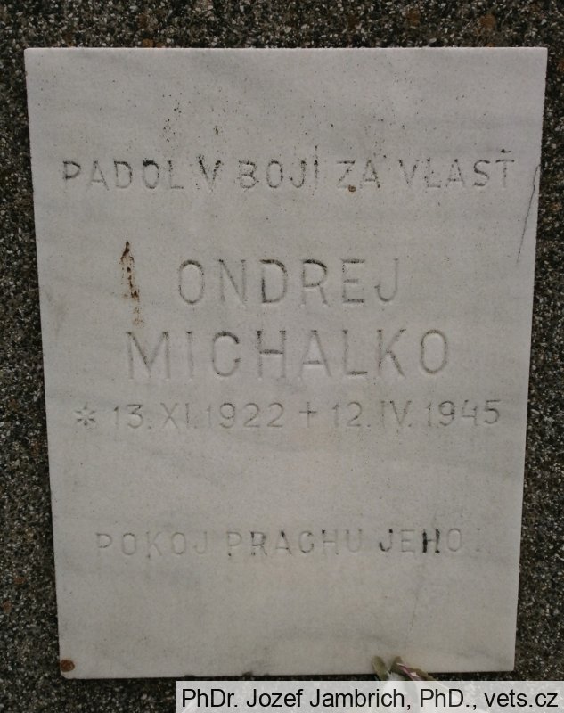 Ondrej Michalko, padol 12.4.1945 pri Vrútkach v radoch 1. ČSAZ, do 1. ČSAZ odvedený 8.3.1945 v Poprade, zaradený do prieskumnej roty 1. čs. samostatnej brigády