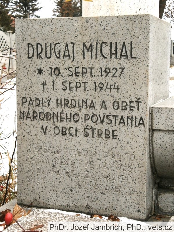 Umístění: Štrba, Dr. Markušovského, obecný cintorín, sektor E vpravo od vchodu oproti domu smútku, hrob č. 299, v strednej častiDRUGAJ MICHAL