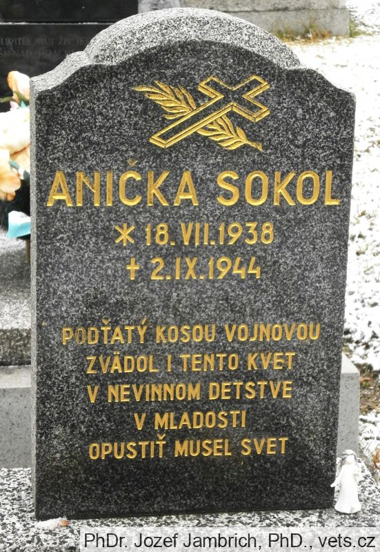 Umístění: Štrba, Dr. Markušovského, obecný cintorín, sektor E vpravo od vchodu oproti domu smútku, hrob č. 300, v strednej častiANIČKA SOKOL