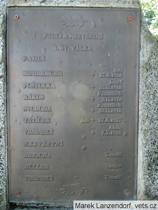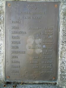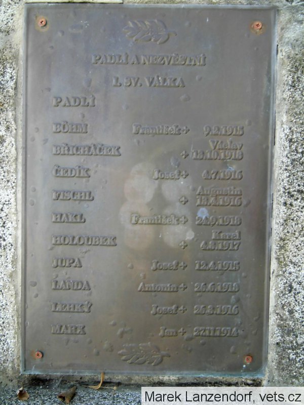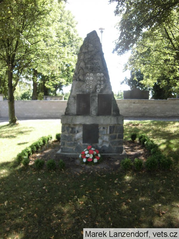22.6.2009 pomník přemístěn před hřbitov přemístění bylo vyčísleno na 174 300,--Kč (zdroj databáze CEVH MO ČR)