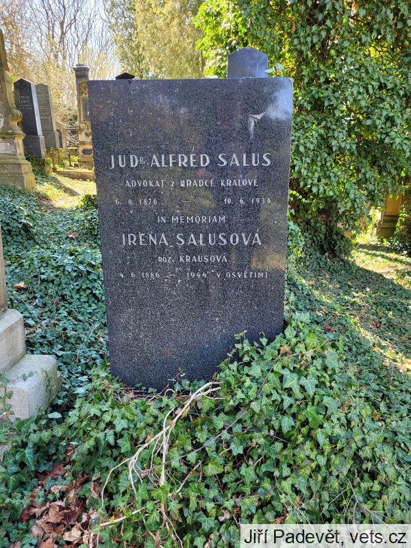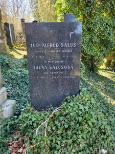 Irena Salusová se narodila podle dobových dokumentů v roce 1884, nikoliv v roce 1886, jak je uvedeno na náhrobku. Do Ghetta Terezín byla deportována 22.12.1942 transportem Ck, do Auschwitz-Birkenau 18.12.1943 transportem Ds.
