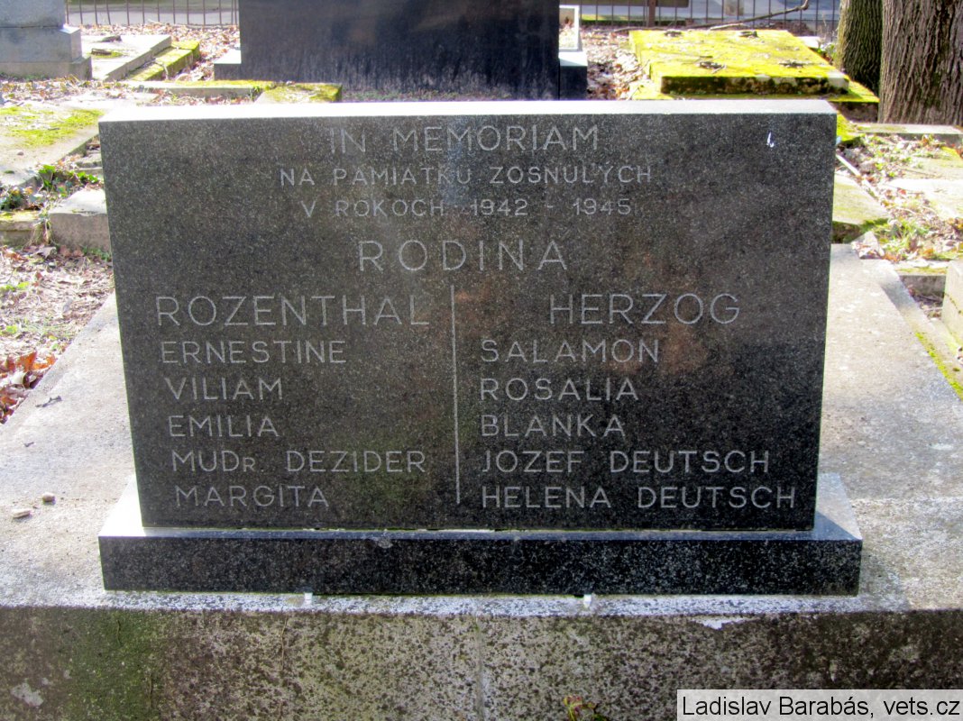 ROZENTHAL ERNESTINE, VILIAM, EMILIA, MUDR. DEZIDER, MARGITA, HERZOG SALAMON, ROSALIA, BLANKA, JOZEF DEUTSCH, HELENA DEUTSCH