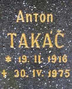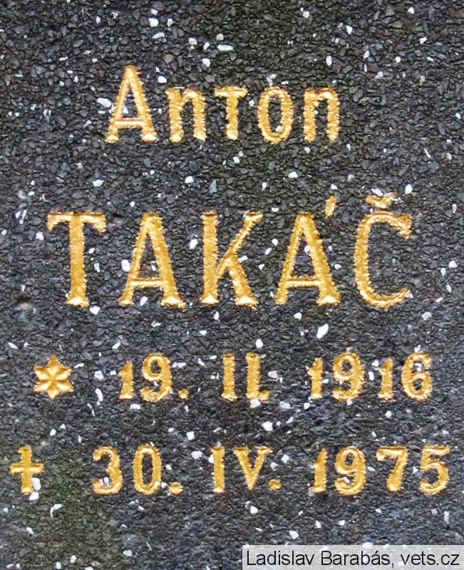 Anton Takáč (19.2.1916 Ružindol - 30.4.1975 Bratislava) stotník/kapitán, veliteľ 11. pešieho práporu Ruža v SNP. V rokoch 1937-38 študoval na VA v Hraniciach na Morave. Po vzniku Slovenskej republiky od marca 1939 bol vel. p. roty v rámci p. pl. 23 a pôsobil na južných hraniciach Slovenska. Od 1.10.1940 bol poslucháčom VAK v Bratislave, od 4.7.1941 bol odoslaný na východný front. Od 15.2.1942 do konca roka 1942 bol vel. štábnej roty MNO. Od mája 1944 sa pripravoval na ozbrojené povstanie. Od 29.8.1944 bol aktívnym účastníkom SNP a zúčastnil sa bojov v priestore Poprad - Kežmarok, neskôr pri Telgárte. Po ústupe do hôr sa pridal k part. brigáde Kl. Gottwald, neskôr bol začlenený do 2. čs. paradesantnej part. brigády na Horehroní, kde vážne ochorel, po vyzdravení sa vrátil ku svojej jednotke v oblasti Brezna. S 1. čs. brigádou sa zúčastnil bojov o Lipt. Mikuláš, Strečno a Polom. Po oslobodení zostal v armáde a zapojil sa do akcií proti banderovcom. 1.10.1948 ho povýšili na pplk. Do zálohy bol prepustený v roku 1971. Vyznamenania: Za hrdinstvo III. st., Pam. medaila so štítkom Javorina, Za odvahu I. st., Voj. víť. kríž V. st., Čs. voj. medaila Za zásluhy I. st., Čs. voj. kríž 1939, Čs. sov medaila Za chrabrosť pred nepriateľom, Rad SNP I. tr., Za pobedu nad Germanijej, rum. Ordinul Coroana Romaniei, juhosl. Red partizanske zvezde, Čs. voj. rad bieleho leva Za víťazstvo, poľ. Krzyz Walecznych