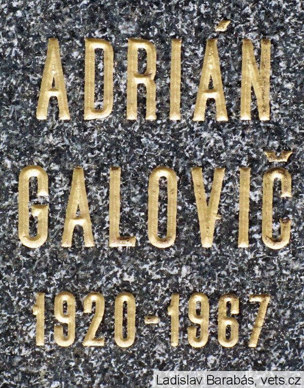 Adrián Galovič (27.4.1920 Neded - 27.3.1967 Bratislava) nadporučík pechoty, spravodajský dôstojník MNO. Na vojenskú službu nastúpil 1.10.1938 a bol odoslaný na ŠDPZ, ktorú absolvoval v roku 1939. Po vzniku Slovenskej republiky bol vyslaný do VA v Banskej Bystrici. Od 1.7.1941 do 12.6.1942 bojoval na frontoch v ZSSR ako veliteľ čaty v RD. Po návrate pôsobil v rôznych posádkach na Slovensku, od 1.11.1944 na MNO v Bratislave. Po skončení vojny vstúpil do čsl. armády, do zálohy bol prepustený 1.3.1949.