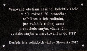 Pamätná tabuľa Obetiam násilnej kolektivizácie