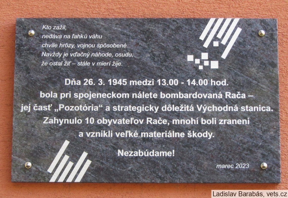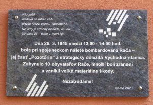Pamätná tabuľa Obetiam bombardovanie Rače