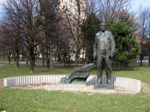 Socha pôvodne stála na Hviezdoslavovom námestí. Jej autorom je sochár Ferdinand Bollo, architektom celkového riešenia je Dušan Kuzma.