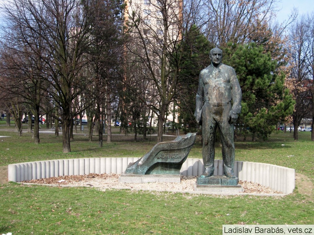 Andrej Bagar (29.10.1900 Trenčianske Teplice - 31.7.1966 Bratislava) herec, režisér, divadelný pedagóg, verejný činiteľ, národný umelec. Za aktívny odpor proti fašizmu v apríli 1939 zatknutý, do októbra 1940 väznený. Počas SNP zakladateľ a vedúci Frontového divadla, ktoré uskutočnilo okolo 50 predstavení a umelecko-agitačnou formou posilňovalo bojového a revolučného ducha povstalcov. Po ústupe SNP do hôr politický komisár 2. skupiny oddielu mjr. Petrova v spojených pertizánskych brigádach Smrť fašizmu. Riadil stranícku prácu v part. oddieloch aj na časti okupovaného územia stredného Slovenska. Vyznamenania: Čs. voj. kríž 1939, Rad SNP I. tr., Rad 25. februára, Rad republiky, Rad práce