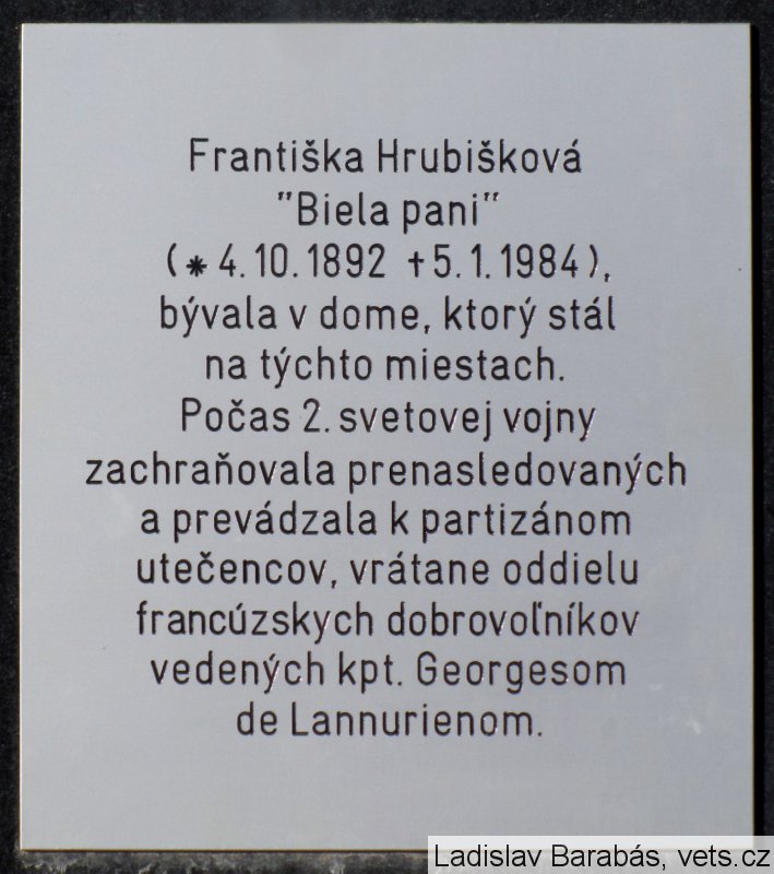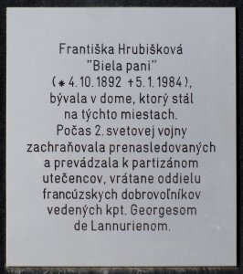 Pamätná tabuľa F. Hrubišková
