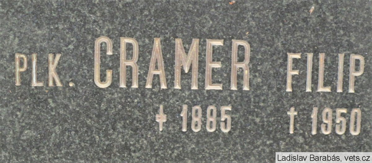 plk. Cramer Filip (1.2.1886 Viedeň 28.10.1950 Bratislava) študoval na Technickej VA vo Viedni. Počas I. sv. vojny zastával funkcie v intendačnej službe, kde dosiahol hodnosť kpt. int. zboru. Po vzniku ČSR vstúpil do čs. armády. Po vzniku Slovenskej republiky bol prijatý do slov. brannej moci, v marci 1940 bol povýšený na plk. int. a v polovici sept.1940 nadobudol slov. št. občianstvo. V roku 1941 sa zúčastnil ťaženia na vých. fronte. Po vojne bol degradovaný a bolo mu odobraté čs. štátne občianstvo. Vyznamenania: Pam. medaila Za obranu Slovenska, Za hrdinstvo 5. stupňa, Pam. odznak 2. stupňa, Red Krune Kralja Zvonimira II. stupnja s mačevima, Voj. víťazný kríž III. triedy.