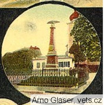 Pomník byl po roce 1945 kompletně zlikvidován. Výřez z dobové pohlednice ukazuje umístění pomníku.