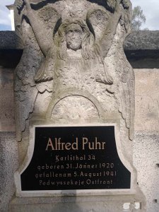Alfred Puhr je pohřben Kriegsgräberstätte Kropywnytskyj - Sammelfriedhof, Ukraine (zdroj: Volksbund.de)