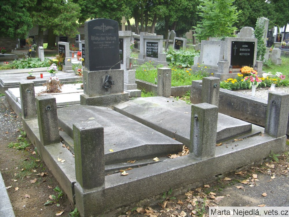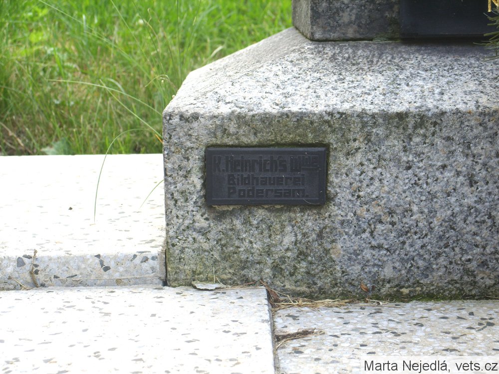Náhrobek zhotovila firma K. Heinrichs W.we, Bildhauerei, Podersam. (Bildhauerei Podersam = Sochařství Podbořany)