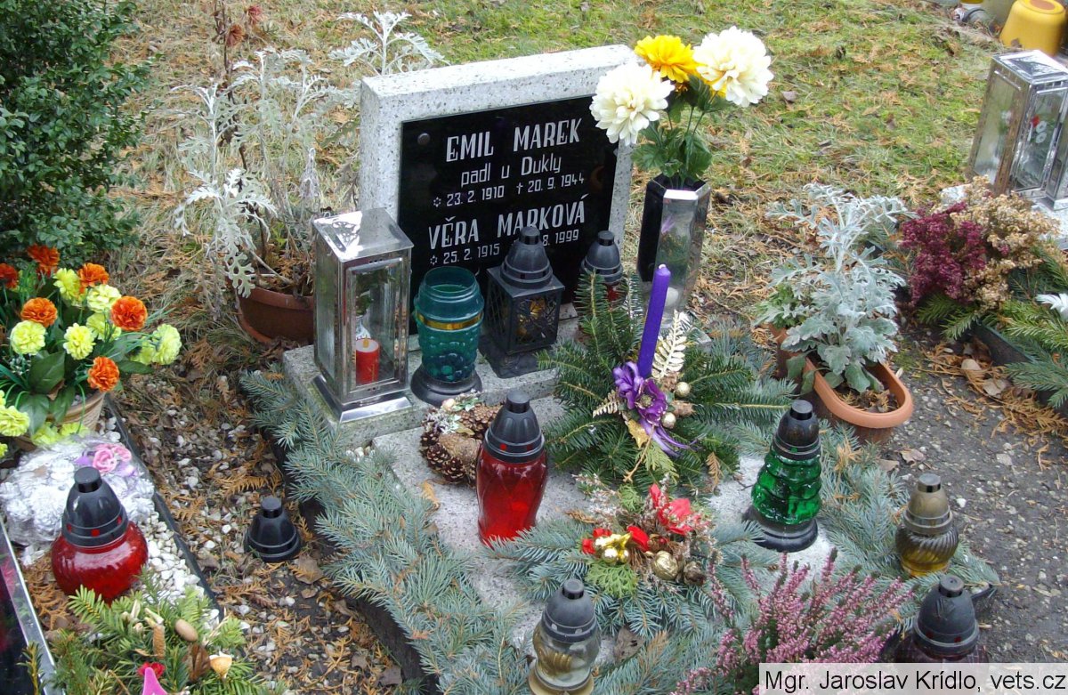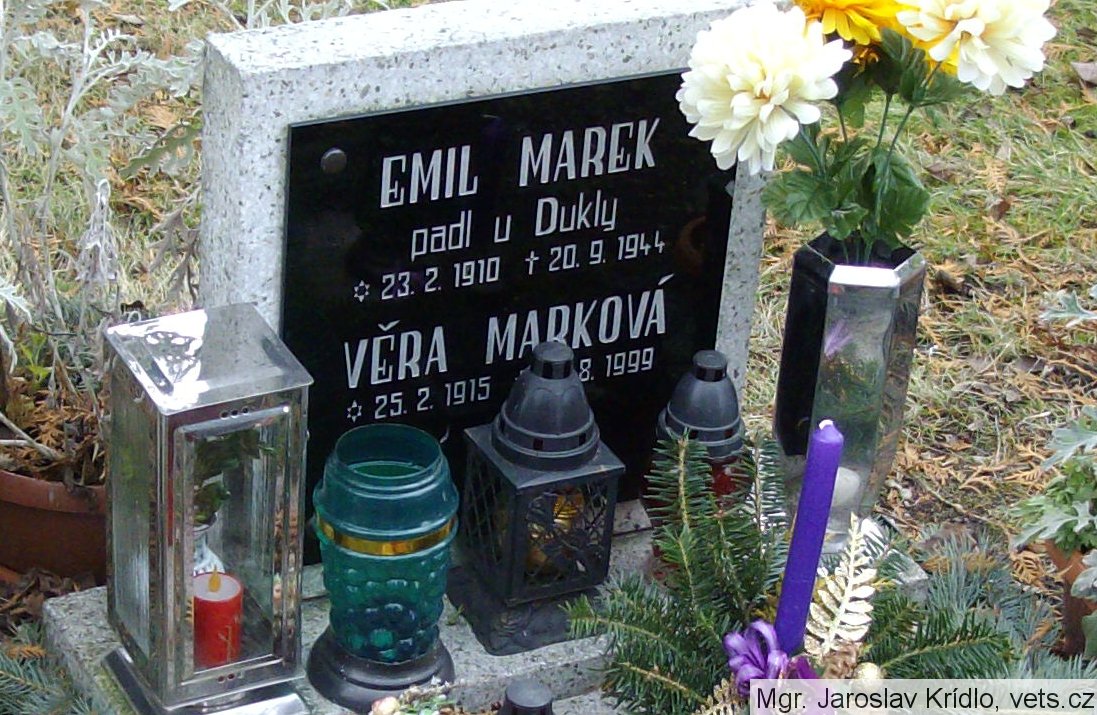 aktivní účastník bojů druhé světové války, v době Karpatsko-dukelské operace, kdy 1. československý armádní sbor od 10. září 1944 vybojoval velmi těžké boje o kótu 534, dominantu německé obrany u města Dukla, kdy tyto boje vyvrcholily 20. září a kdy vojín Emil Marek, příslušník 1. československé samostatné brigády v SSSR, položil svůj život a byl pochován; jeho jméno je uvedeno na druhé pamětní desce z osmi Pamětních desek Obětí 2. světové války, která je umístěna: Vyšný Komárnik, Dukelský průsmyk, viz archiv CEVH MO ČR