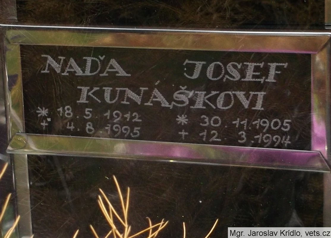 Kunášek Josef, Josef, *30.11.1905, Libánovka, Volyň, národnost česká, kmenové číslo 9.040/M, datum a místo odvodu 21.03.1944 a 15.05.1944 ČSVJ/NT, 15.05.1944 (PR 100/44), Rovno a Kaměněc Podolskij, jednotka při úmrtí 3. čs. samostatná brigáda v SSSR, †13.9.1944, Karpaty, Wrocanka, číslo protokolu 01/31/1836-Rovno a 7.707, pohřben Machnówka,