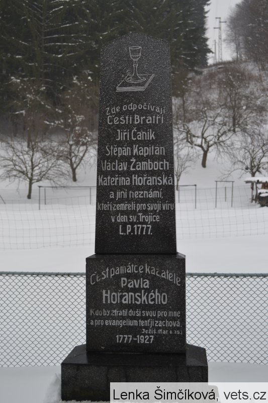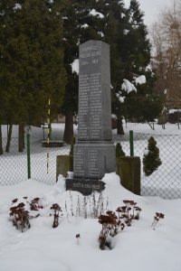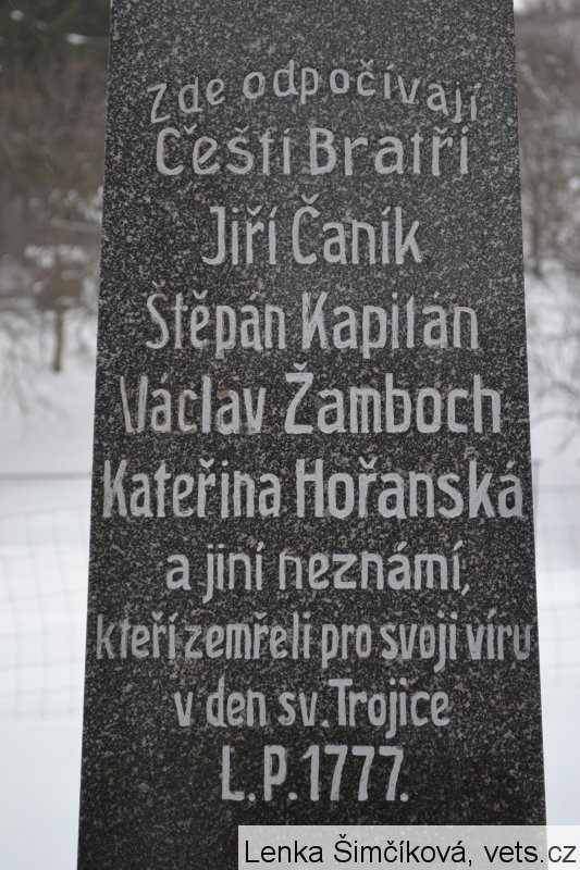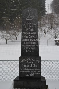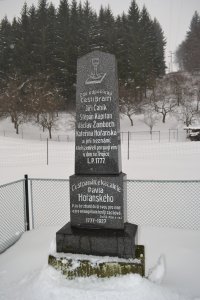pod deskami se nachází ještě další, z fotografií nečitelný, nápis, zakrytý sněhem