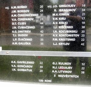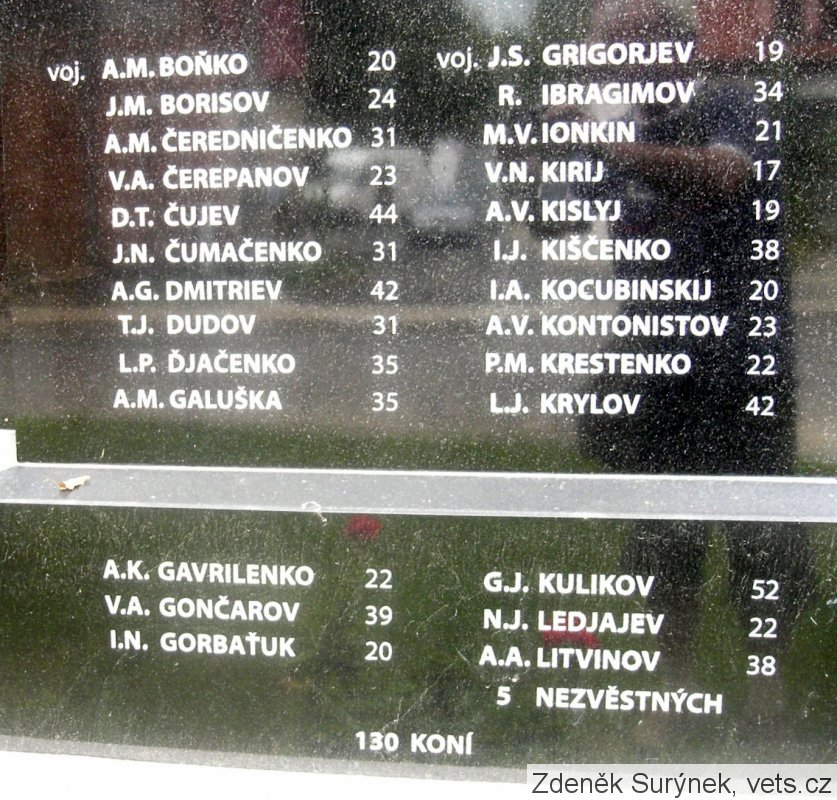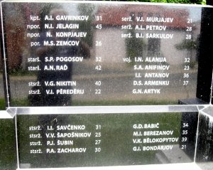kpt. A.I.GAVRINKOV 31, npor. N.I.JELAGIN 45, npor. N.KONPJAJEV, por. M.S.ZEMCOV 26, starš. S.P.POGOSOV 32, starš. A.N.RAĎ 42, starš.V.G.NIKITIN 40, stsrž.V.I. PĚREDĚRIJ 22, stsrž. I.I.SAVČENKO 31, stsrž. V.V.ŠAPOŠNIKOV 25, stsrž.P.J.ŠUBIN 27, stsrž.P.A.ZACHAROV 30, serž.V.I.MURJAJEV 21, serž.A.L.PETROV 28, serž. B.I. SARKULOV 28, voj. I.N.ALANUA 32, S.A.ANIFINOV 23, I.I. ANTANOV 36, D.S. ARMENKU 37, G.N. ARTYK, G.D. BABIČ 34, M.I. BEREZANOV 35, V.K. BĚLOKOPYTOV 39, G.I. BONDARJOV 21, Voj. D.A. MANDRIK 19, P.F. MARKOV 34, V.S. MEDVEDĚNKO, V.J. MIŠIN 28, M.G. NĚLINOVIČ 21, S.K. OVČINDIKOV, V.S. PEŠKIN 39, N.I. PETRAŠEV 19, A. RAKIŠEV 44, voj. G.V. RAZARENKOV 19, L.M. RONĚS 39, V.P. RUDIK 30, I.K. RYBAČUK 23, S.O. SKORBA 33, I.I. SOROČANOV 30, S.T. STUKALSKIJ 40, G.G. ŠELUDČENKO 21, G.M. ŤJURIKOV 27, D.Z. VIGERŽINSKIJ 34, A.M. BOŇKO 20, J.M. BORISOV 24, A.M. ČEREDNIČENKO 31, V.A. ČEREPANOV 23, D.T. ČUJEV 44, J.N. ČUMAČENKO 31, A.G. DMITRIEV 42, TJ. DUDOV 31, L.P. ĎJAČENKO 35, A.M. GALUŠKA 35, A.G. GAVRILENKO 22, V.A. GONČAROV 39, I.N. GOBRAŤUK 20, voj. J.S. GRIGORJEV 19, R. IBRAGIMOV 34, M.V. IONKIN 21, V.N. KIRIJ 17, A.V. KISLYJ 19, I.J. KIŠČENKO 38, I.A. KOCUBINSKIJ 20, A.V. KONTONISTOV 23, P.M. KRESTENKO 22, L.J. KRYLOV 42, G.J. KULIKOV 52 N.J. LEDJAJEV 22, A.A. LITVINOV 38, M.G. NIKITINSKIJ 40,