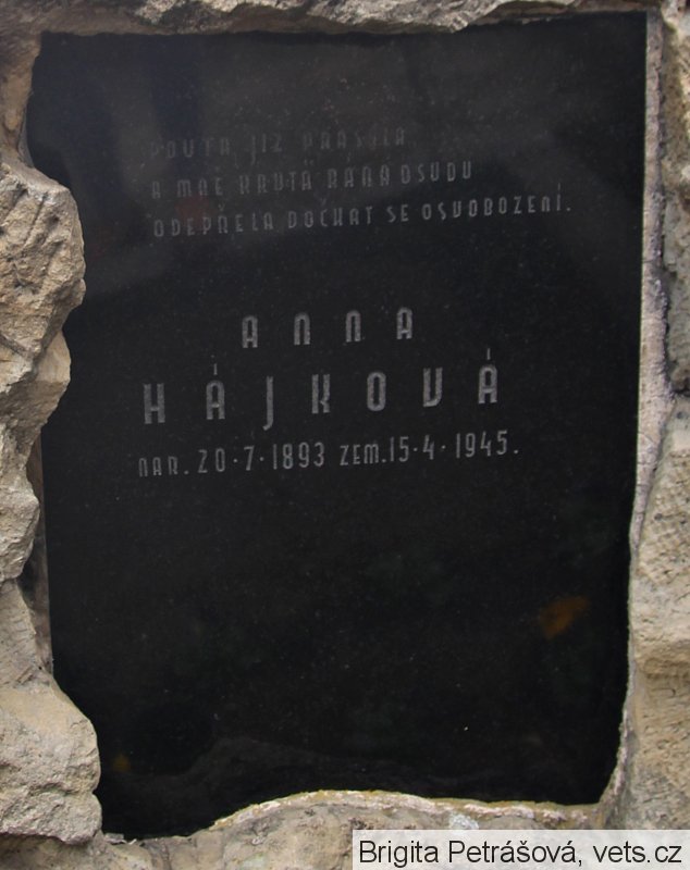 Zemřela 2 dny před osvobozením obce Rudou armádou (17. 4. 1945).
