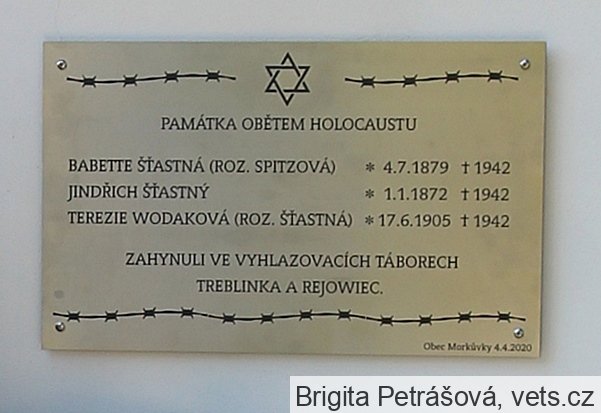 Umístění: Morkůvky, hřbitov, na zdi bývalé márnicePAMÁTKA OBĚTEM HOLOCAUSTU