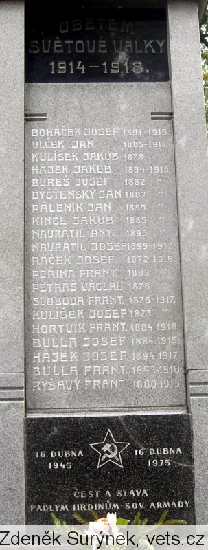 Mezi nezvěstné patří ještě František Ryšavý č. 33, který není na pomníku vytesán. Mimo zde uvedené jsou v obci invalidé k práci neschopní.