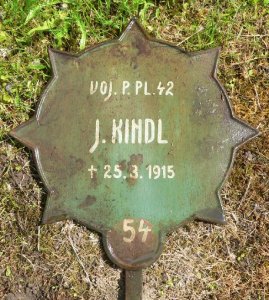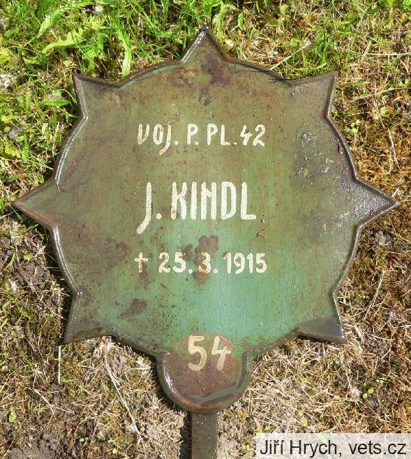 Kindl Josef: *1.2.1894 Maria Kulm (dnes Chlum Svaté Maří), příslušný Kříše, okr. Rokycany. Svobodný, tovární dělník. Inft., IR. Nr. 42, ErsBaon. +23.3.1915 GarnSpit. Nr. 13, Theresienstadt, břišní tyfus. 25.3.1915 zde pohřben, hřbitov II, čtv. 6, č. 54. Hroby viditelné, neoznačeno.
