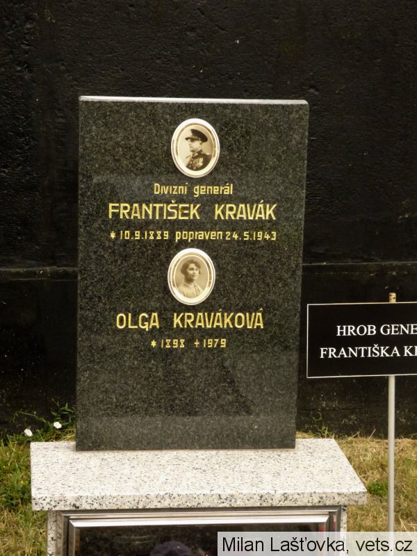 .... v Mostkovicích na hřbitově se v pondělí 13. června 2011 uskutečnil pod patronací ředitele KVV Olomouc plukovníka Ing. Josefa Kuly, za účasti rodiny, představitelů Olomouckého kraje, města Prostějova a obce Mostkovice pietní akt s vojenskými poctami - uložení ostatků divizního generála Františka Kraváka do rodinného hrobu.