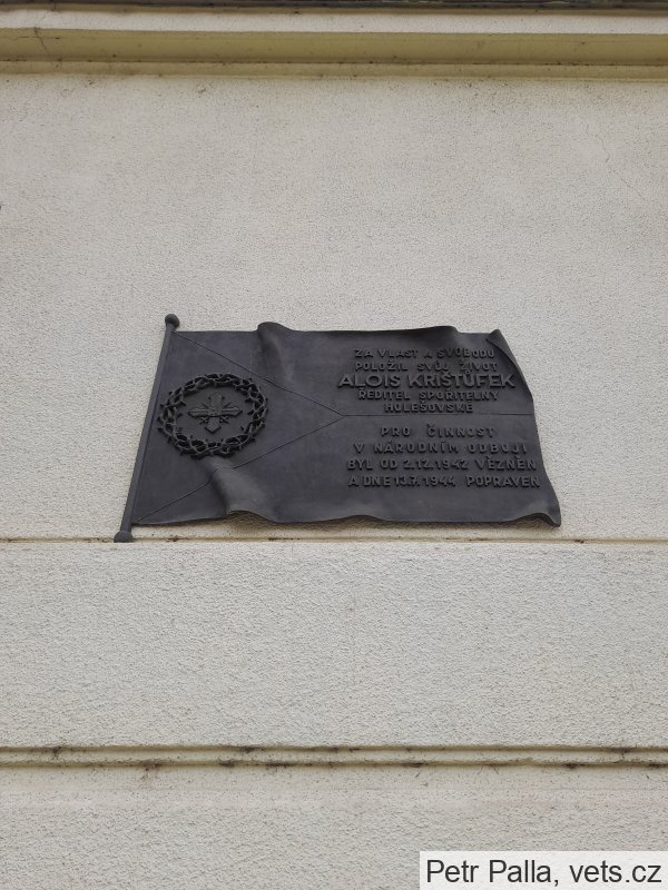 Umístění: Holešov, Masarykova 628, na fasádě budovy MÚ Holešov ze strany ulice Smetanovy sadyNápis: