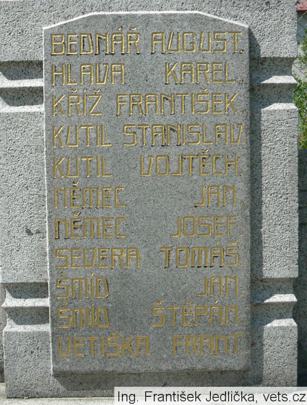 BEDNÁŘ AUGUST., HLAVA KAREL, KŘÍŽ FRANTIŠEK, KUTIL STANISLAV, KUTIL VOJTĚCH, NĚMEC JAN, NĚMEC JOSEF, SEVERA TOMÁŠ, ŠMÍD JAN, ŠMÍD ŠTĚPÁN, VETIŠKA FRANT.