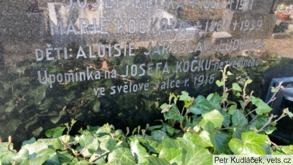 Josef Kočka je uveden na pomníku padlých 1. světové války v Železném u Tišnova.