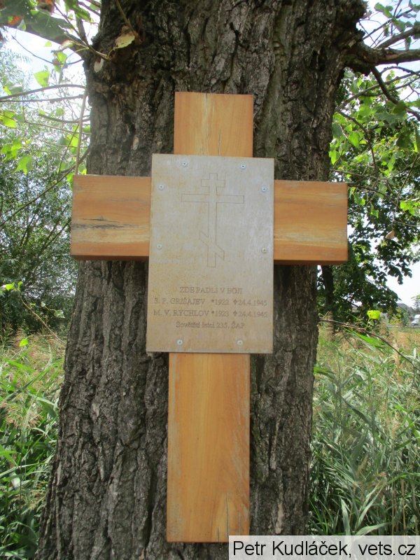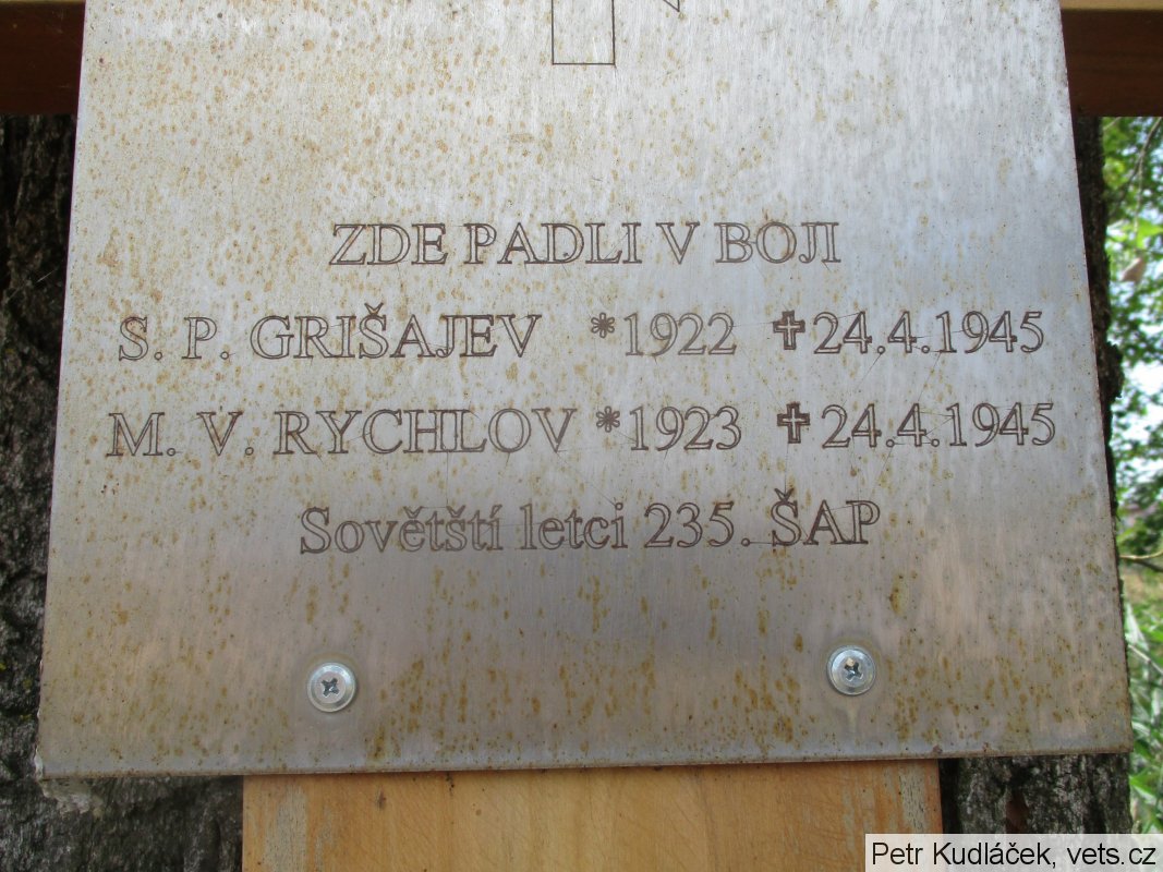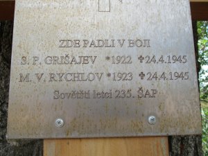 Pilot starší por. Sergej Petrovič Grišajev a střelec gardový staršina Michail Vasiljevič Rychlov s letadlem IL-2 zde byli sestřeleni v boji. Zdroje se mírně rozcházejí v datu sestřelu (22. nebo 24.4.1945), i v jednotce letců (235. nebo 245. bitevní letecký pluk).
