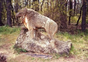 V Kanicích proti odbočce na Babice v pravém úhlu doprava od průchozí ulice vede ulička k lesu. U lesa najdeme kamennou sochu lva. Socha lva pochází z původního památníku TGM obětem 1. světové války. Pomník (z pískovce) byl původně v Kanicích na návsi a byl v době 2. světové války rozebrán a po částech rozvezen po obci. Busta TGM byla v r. 1993 objevena při výkopech kanalizace u budovy bývalé školy (když byla přestavována na současný obecní úřad). Ti dva, kteří bustu zakopali si umístění "vzali do hrobu". Až po nálezu v r. 1993 si některé důchodkyně vzpomněly, že stávala před okny školy a že jí lezli kluci na ramena, aby se podívali, jak děvčata ve škole cvičí. Bustu nalezli na stavbě pracující Ukrajinci a vyděsili tehdejší sekretářku OÚ tím, že řekli "my vykopáli čelavěka" - domnívala se, že našli mrtvolu. Po té ještě řekli k ulomené hlavě "my dúmali, što éto Lénin". Lev byl podle pamětníků za 2. světové války převezen na desce a pomocí válečků na místo Chocholky na kraj obecního lesa. Říká se zde "pískovna u lva„(Loc: 49°15´38.554“ N, 16°42´46.495“ E). Ostatní části pomníku byly nalezeny zabudované v tarasu u nynějšího zdravotního střediska a to v r. 1994, kdy zde prováděli přestavbu objektu na zdravotní středisko.