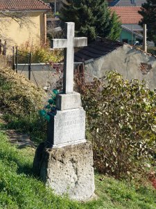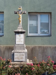 Kříž s nápisem na jeho zadní straně byl původně postaven na druhé straně Kanic, na současné místo byl přemístěn kvůli výstavbě nového domu.