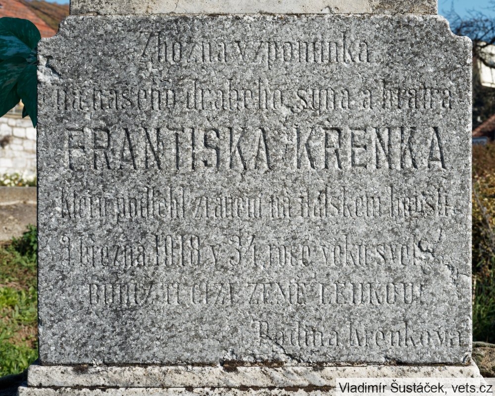 Vojín František Křenek (*1883) byl raněn na italské frontě, zranění podlehl v nemocnici v Salzburgu. Dne 6.3.1918 byl pohřben ve společném hrobě v Salzburgu.
