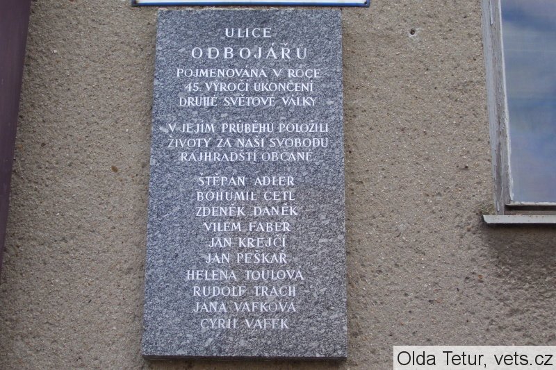 Umístění: Rajhrad, Odbojářů, na rohu ulic Masarykova a Odbojářů na stěně sokolovny