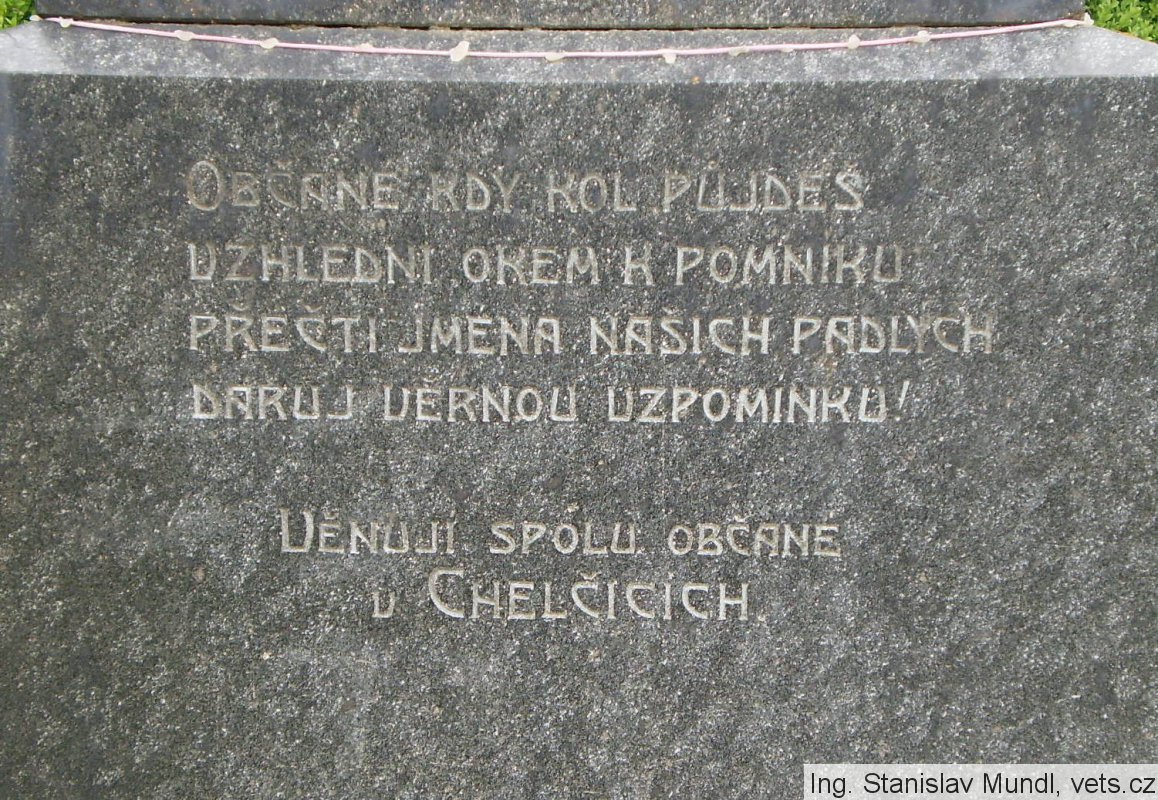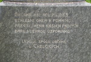Umístění: Chelčice, na návsi před budovou č.69Nápis:
