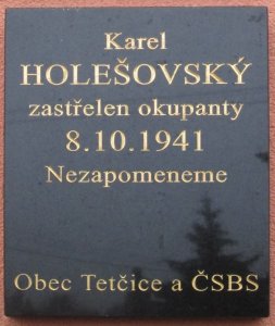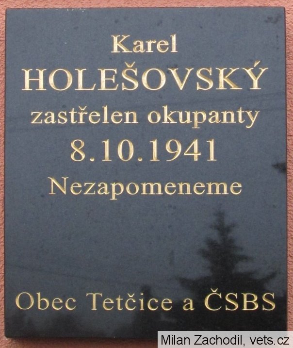 V roce 1941 odsoudili nacisté za sabotáž řezníka Karla Holešovského z Tetčic na Brněnsku. Až na šibenici se nakonec nedostal, když jednomu z gestapáků cestou na popraviště vykloubil čelist, druhý ho zastřelil.