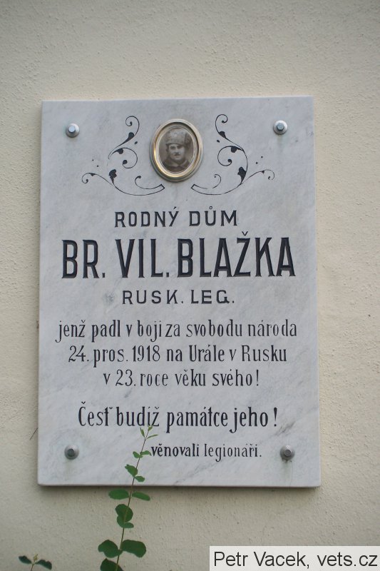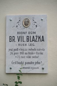 Blažek Vilém, nar. 22.5.1895, Sokolnice. V RU armádě sloužil u 99. pěšího pluku jako vojín. Zajat 17.9.1915, Rovno. Do ČS legií v Rusku se přihlásil v Dněpr, Jekatěrinoslav, zařazen 10.7.1917 jako vojín k 5. střeleckému pluku. Padl 24.12.1918, Teplaja u Tichonovky, Perm. (zdroj databáze VÚA Praha)