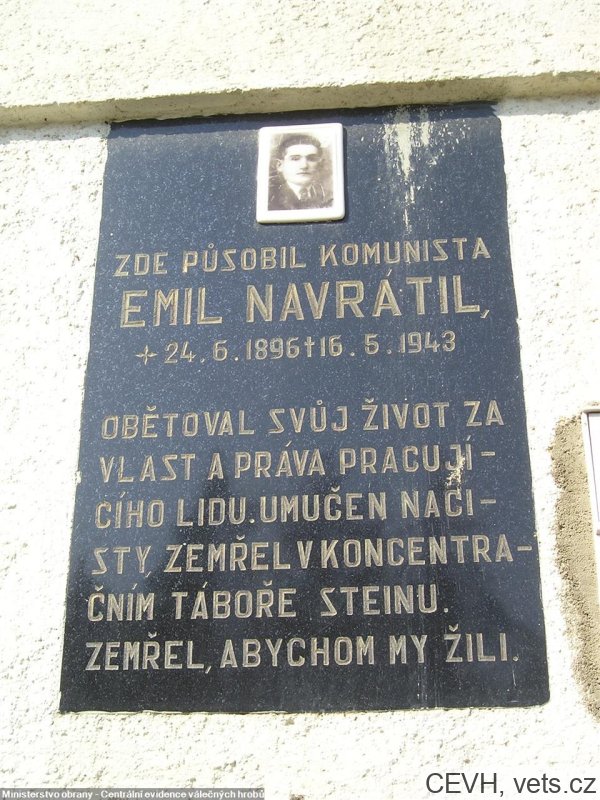 EMIL NAVRÁTIL, DĚLNÍK, *24.6.1896, +16.5.1943 V KONCENT. TÁBOŘE VE STEINU.
