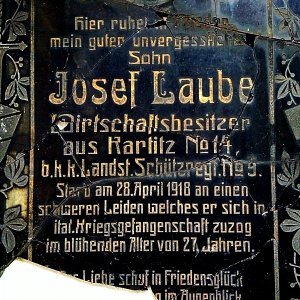 Laube Josef: *1891. Dle VHÚ byl repatriován z italského zajetí (zajatecký tábor Altamura).