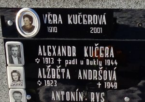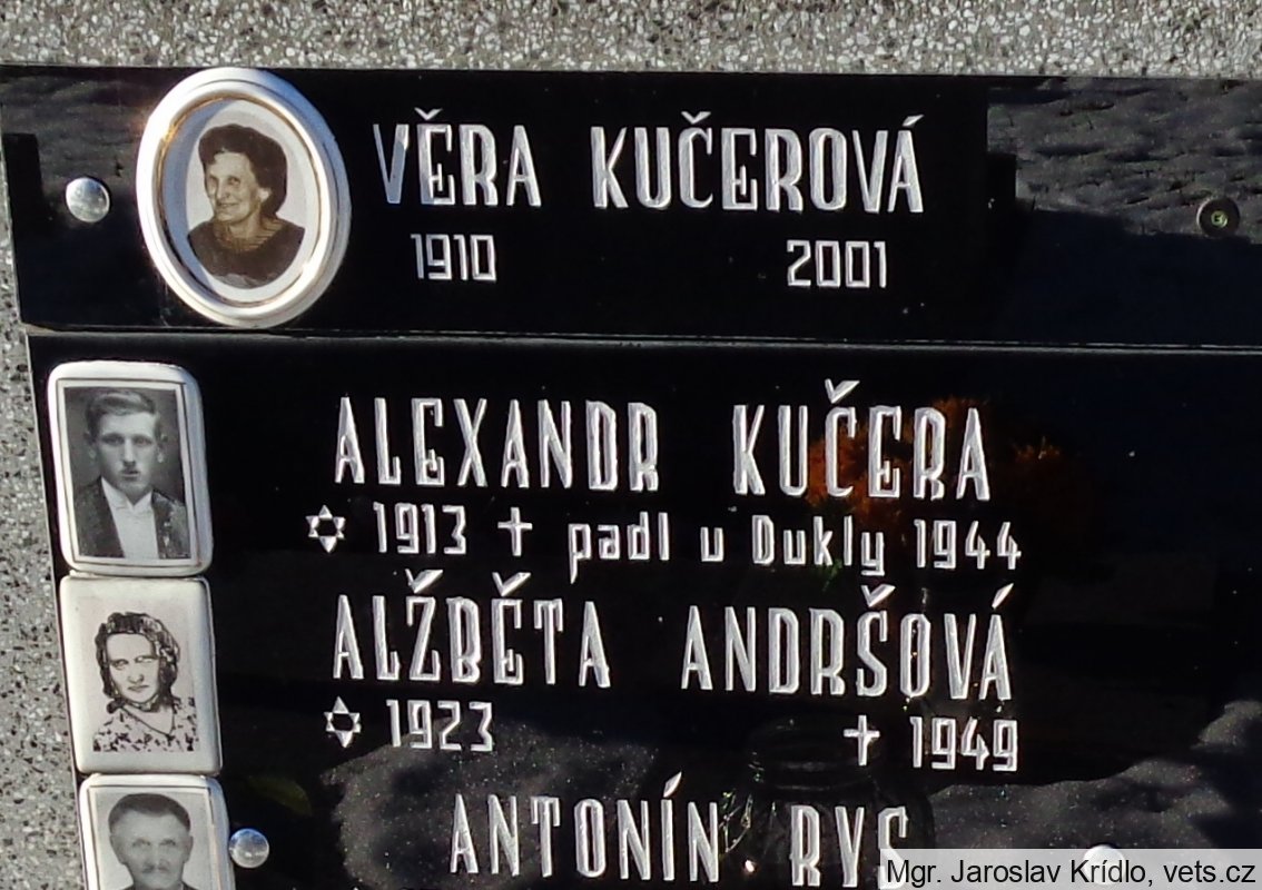 KUČERA Alexandr, hodnost: vojín, datum narození: 21.11.1913, místo narození: Podhájce, Volyň, jednotka: 1.2.1.- první pěší brigáda, zraněn: ne, úmrtí: padl, datum úmrtí: 8.10.1944, místo úmrtí: Karpaty, prameny: zápis o úmrtí č.3849/P; kartotéka-Východ, poznámka: kmenové číslo: 10 156/m.