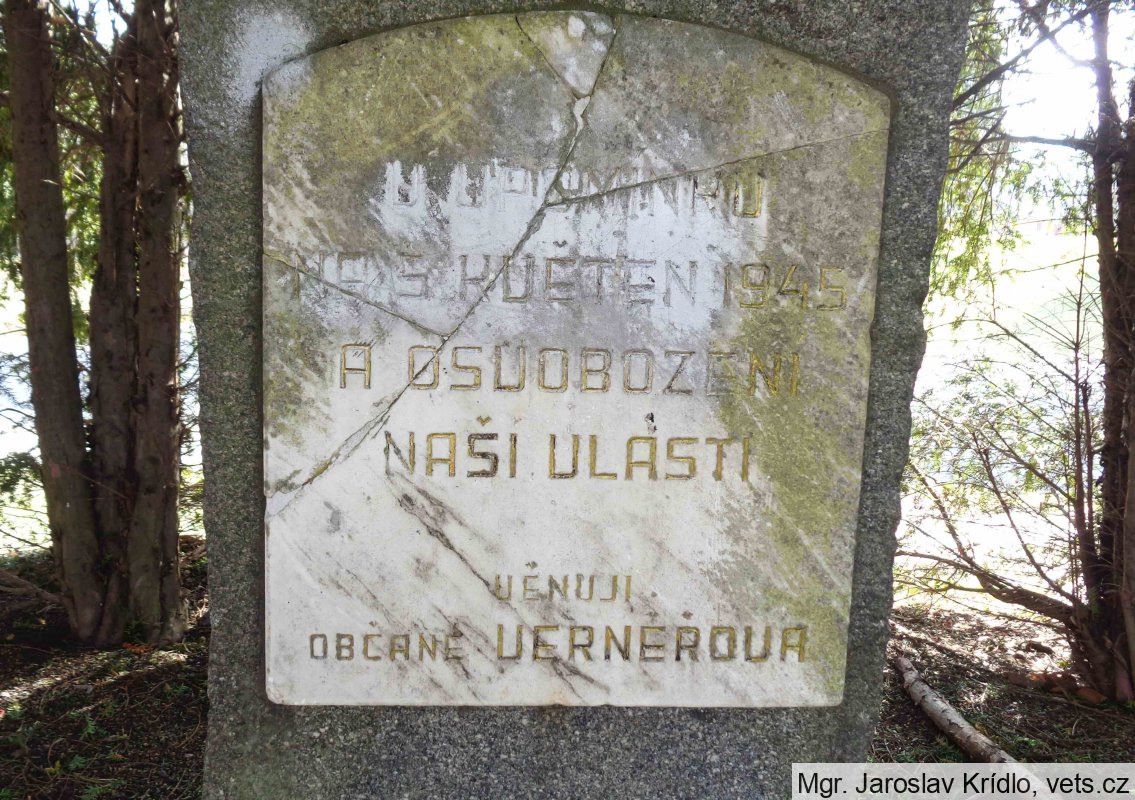 V den dohledání pamětní desky se k ní vyjádřila místní obyvatelka, která v Klášterci nad Ohří žije od roku 1944 a uvedla, že tato pamětní deska byla původně odhalena a umístěna v obci Vernéřov. Když byla obec vystěhovaná a zrušena, pamětní deska byla přemístěna do Klášterce nad Ohří.