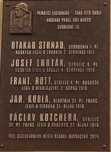 Umístění: Kladno, Školská 322, Kročehlavy, budova školyPAMÁTCE LEGIONÁŘŮ – ŽÁKŮ TÉTO ŠKOLY